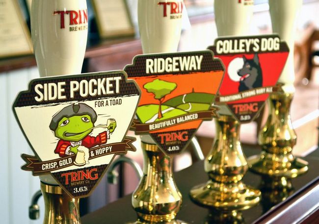 Tring’s pumpclips have moved away from its distinctive triangle and now use a shield shape. However this is a subtle change in shape and one that will hopefully avoid consumer confusion. Kate has included triangles within the design as this reflects the heritage of the brewery which was originally located in the historic area of Tring known as the Tring Triangle.